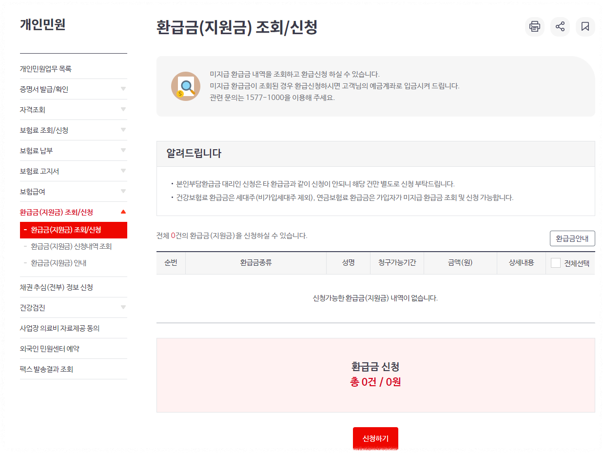 국민건강보험 환급금 조회 신청방법