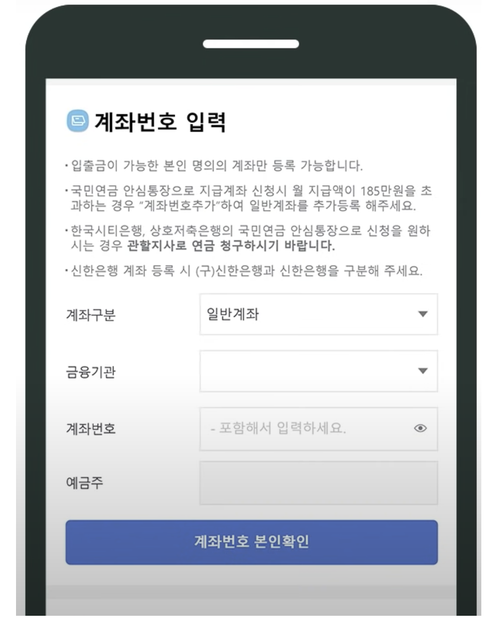 | 본인명의 계좌사본 | ▶️온라인 계좌사본준비 | 분할연금 대상자가 있는경우 | |