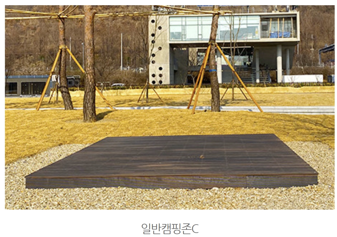 | 일반캠핑존 | A존(2인/자갈형)24면 B존(4인/자갈형)19면 C존(4인/데크형)13면 D존(4인/자갈형)26면 |