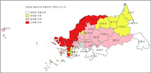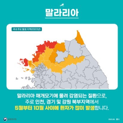 우리나라에서 말라리아 감염환자수는 매년 400명 수준이지만 올해 23주 까지 말라리아 환자수는 총173명으로 전년대비 3.3배 증가하고 있습니다. 더 중요한 것은 최근 환자수가 급격히 증가하고 있어 질병관리청에서 국내 말라리아 위험지역인 인천, 경기,강원북부 거주자및 방문자를 대상으로 감염주의를 당부한다고 했습니다.