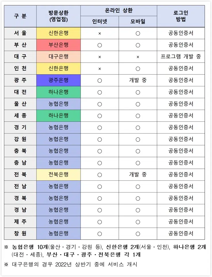 | 신한은행(앱을 이용해야함) | 서울 /인천 | 안드로이드용(신한 SSOL) |