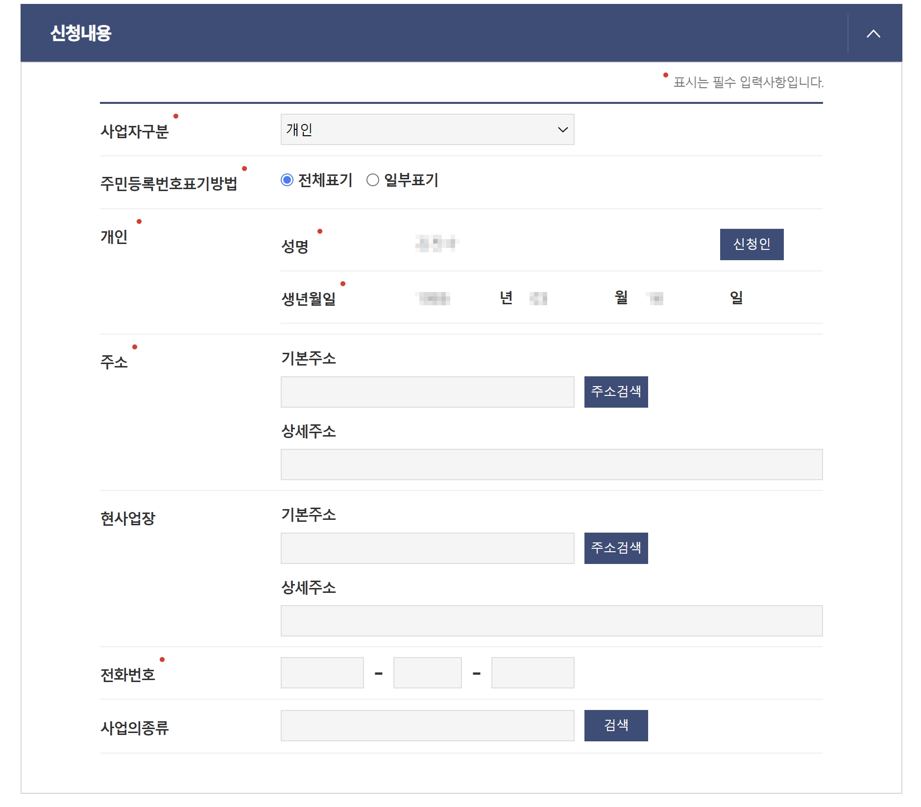 4. 신청내용을 기재합니다.