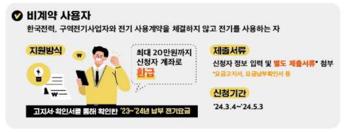 ✅전기요금 지원방식: 한국전력이 직접 계약자의 고지서 상 전기요금을 최대20만원 차감하는 방식
