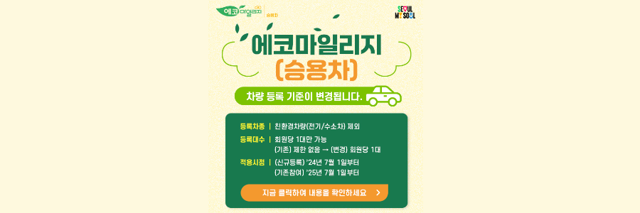 ⚠️2024년 7월1일 부터 에코마일리지 승용차의 등록 변경되는 항목이 있으니 반드시 6월30일 까지 등록 신청하셔야 합니다.