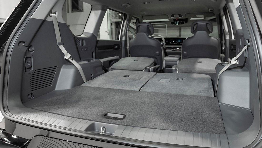 EV9은 외관을 직선으로 구형한 다각형과 볼륨감이 느껴지게 디자인했습니다. 전면부는 디지털 패턴 라이팅 그릴, 스몰 큐브 프로젝선 LED 헤드램프. 스타맵 LED 주간주행등이 탑재됐고 후면부는 스타맵 LED 리어콤비네이션 램프로 전면부와 통일감을 주었습니다. 실내는 탁 트인 실내공간으로 E-GMP를 적용해 극대화했는데 2열과 3열을 편평하게 접을 수 있고 특히 2열은 글로벌 전기차 모델 중 최초로 벤치시트와 기본형, 릴렉션형, 스위블형 2인승 독립시트등 4가지 시트를 적용할 수 있도록 했다는 점도 장점이 되겠습니다. 12.3인치 클러스터, 5인치 공조, 12.3인치 인포테인먼트 시스템 디스플레이를 이은 파노라믹 와이드 디스플레이도 탑재되었습니다. 시동 버튼이 통합된 칼럼 타입 전자식 변속레버와 히든타입의 터치 버튼으로 운전자의 간결한 조작을 돕는 게 중점을 두었다고 하네요. 또한 가죽소재 사용의 단계적 축소를 진행하며 바이오 기반 재료의 사용을 늘려나가겠다는 기아의 지속가능한 디자인전략을 담은 첫 번째 모델이라고 합니다.